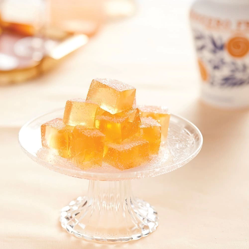 | Tipo de produto Pepitas de gengibre cristalizadas imersas em calda de gengibre e cúrcuma |