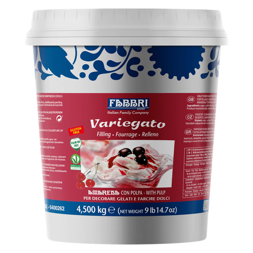 | Código e descrição do produto no catálogo da Fabbri Brasil 6400261 - Variegato Amarena Itália 4,5kg |