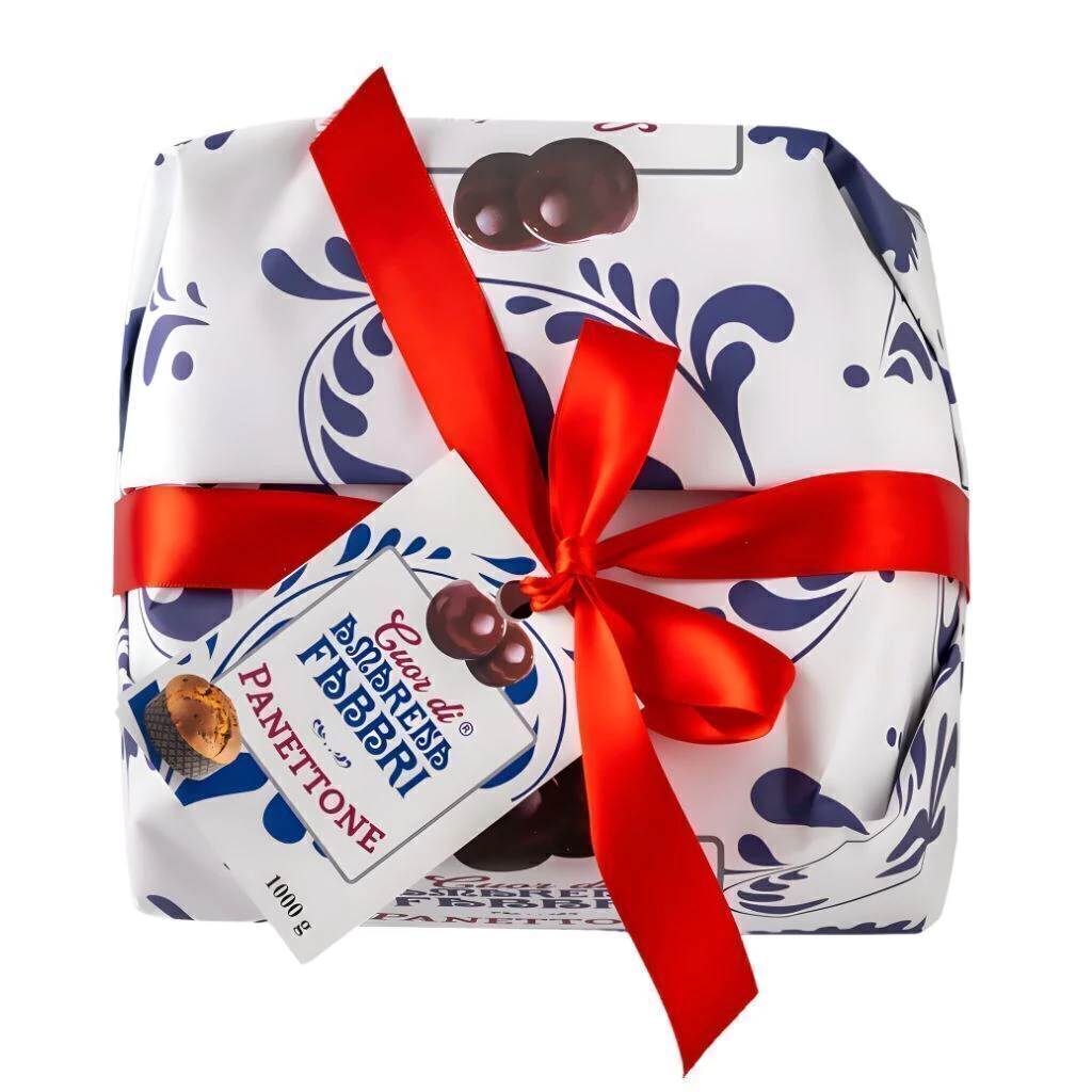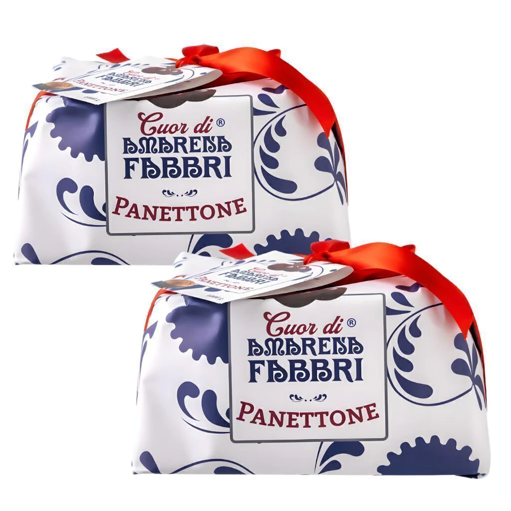 CAIXA COM 02 UNIDADES DE PANETONE ITALIANO COM CEREJAS SILVESTRES AMARENA FABBRI 1905 1 KG